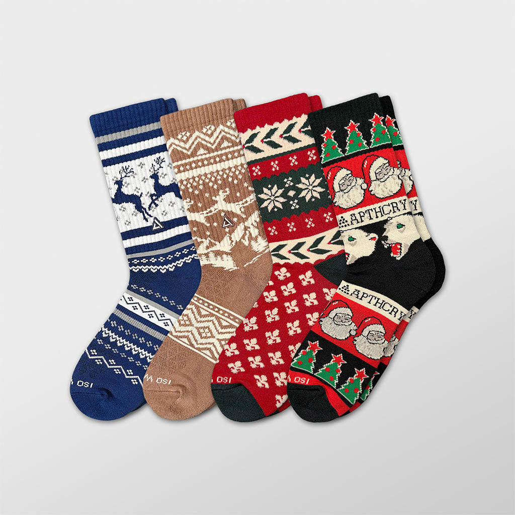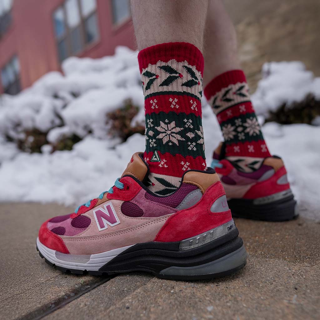 The Holiday Spirit Collection blends seasonal nostalgia with modern streetwear design. Each pair takes inspiration from classic winter patterns, festive graphics, and alpine scenery, creating elevated holiday staples that feel both cozy and collectible. Perfect for gifting, layering, and styling all season long.