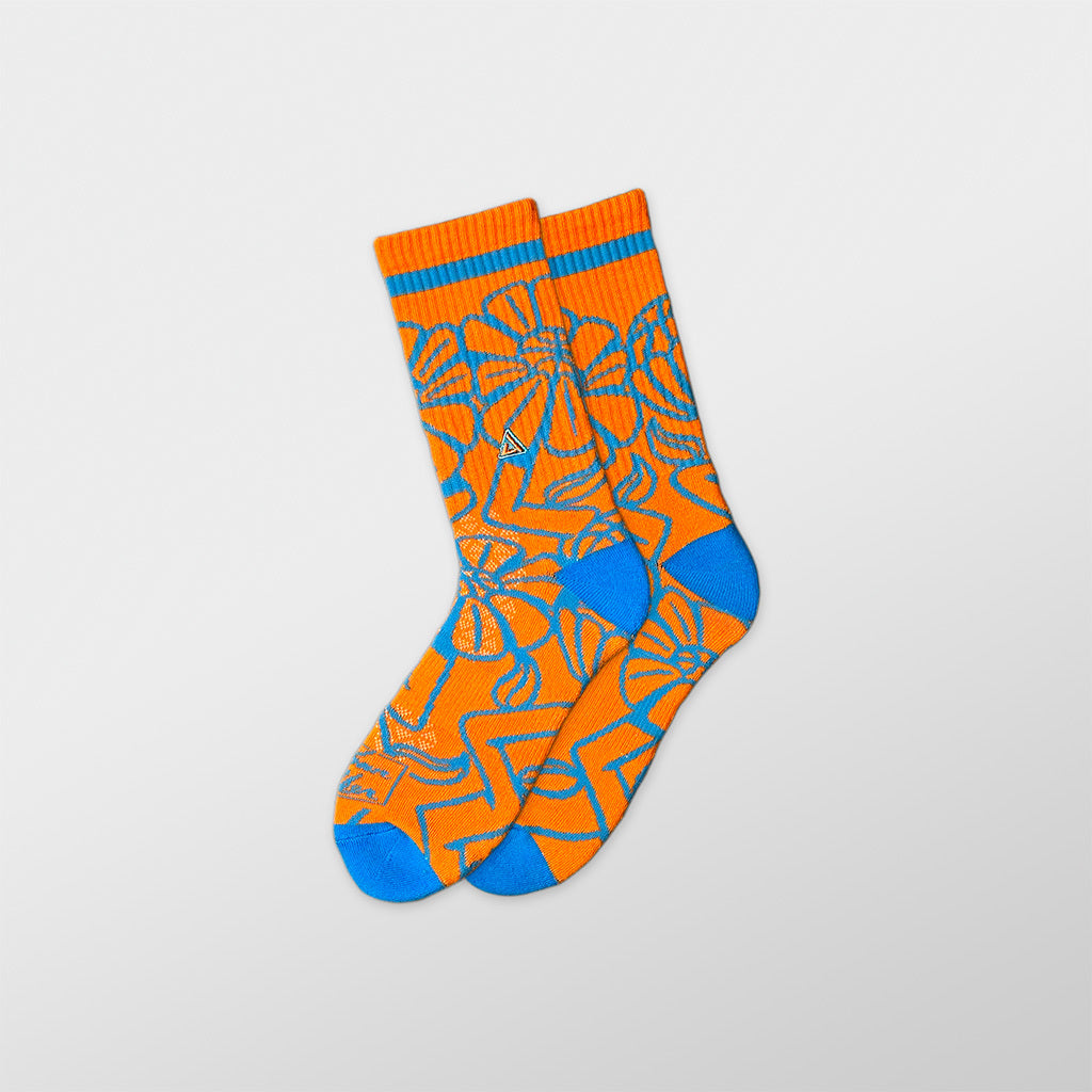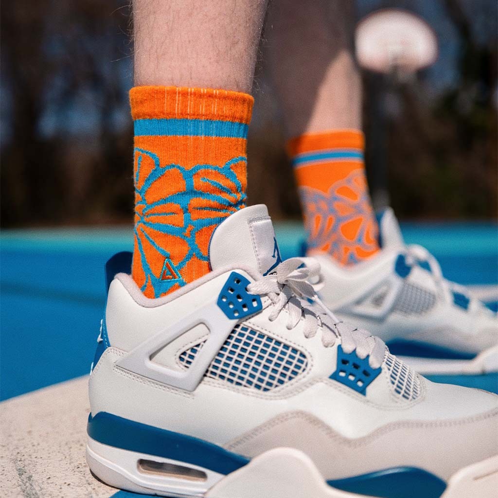The Nathan Walker - Grow Your Game sock combines his love of nature and basketball into one. This design features a basketball in the pistil of a flower on an orange base.