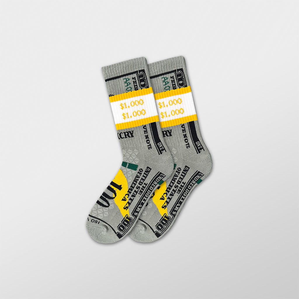 Money Band Collection flips the look of currency straps into wearable street art. Inspired by the stacks every hustler dreams of, each pair represents a different level of ambition, from humble hundreds to high-roller thousands. Designed with bold denominations, crisp color bands, and premium comfort, this drop is all about chasing the bag and looking good while doing it.