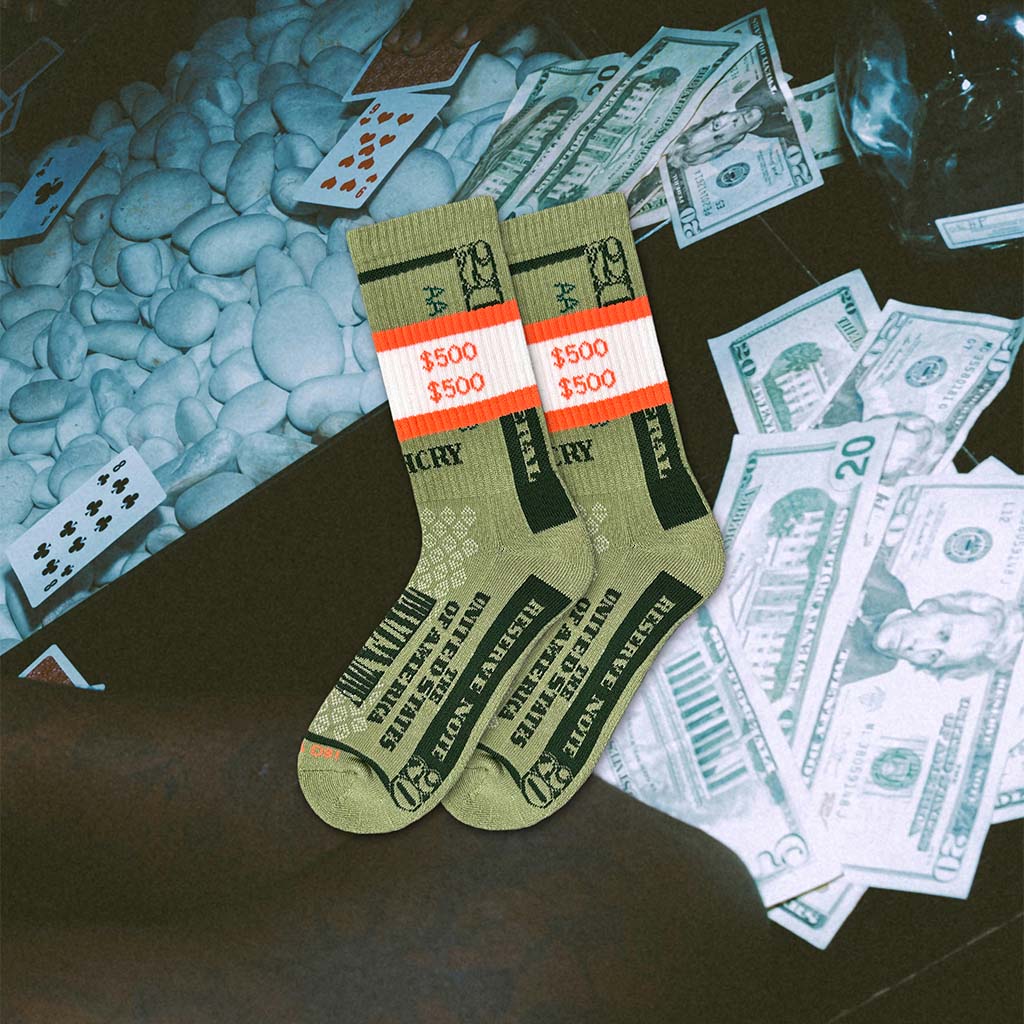 Money Band Collection flips the look of currency straps into wearable street art. Inspired by the stacks every hustler dreams of, each pair represents a different level of ambition, from humble hundreds to high-roller thousands. Designed with bold denominations, crisp color bands, and premium comfort, this drop is all about chasing the bag and looking good while doing it.