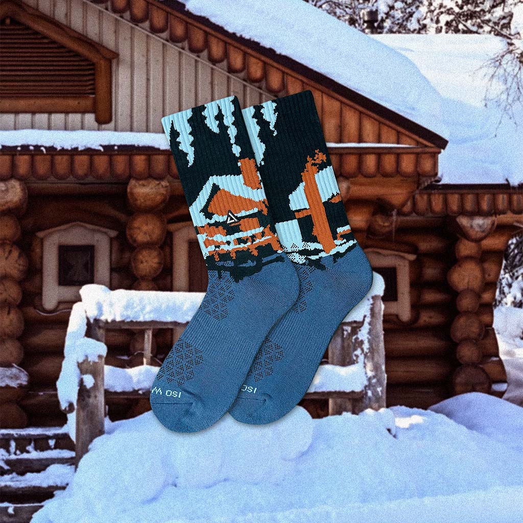 Muted blue-gray shades paired with warm neutral details, evoking late nights in mountain cabins, snowy windows, and the calm after the drive up.